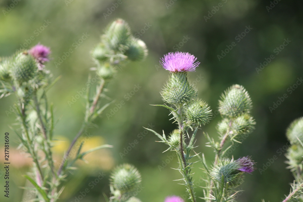 Bull Thistle Cirsium Vulgare Prickly Weed With Pretty Purple Flower On Top Growing In A Waste Area On The Outskirts Of Kingston Ontario Stock Photo Adobe Stock
